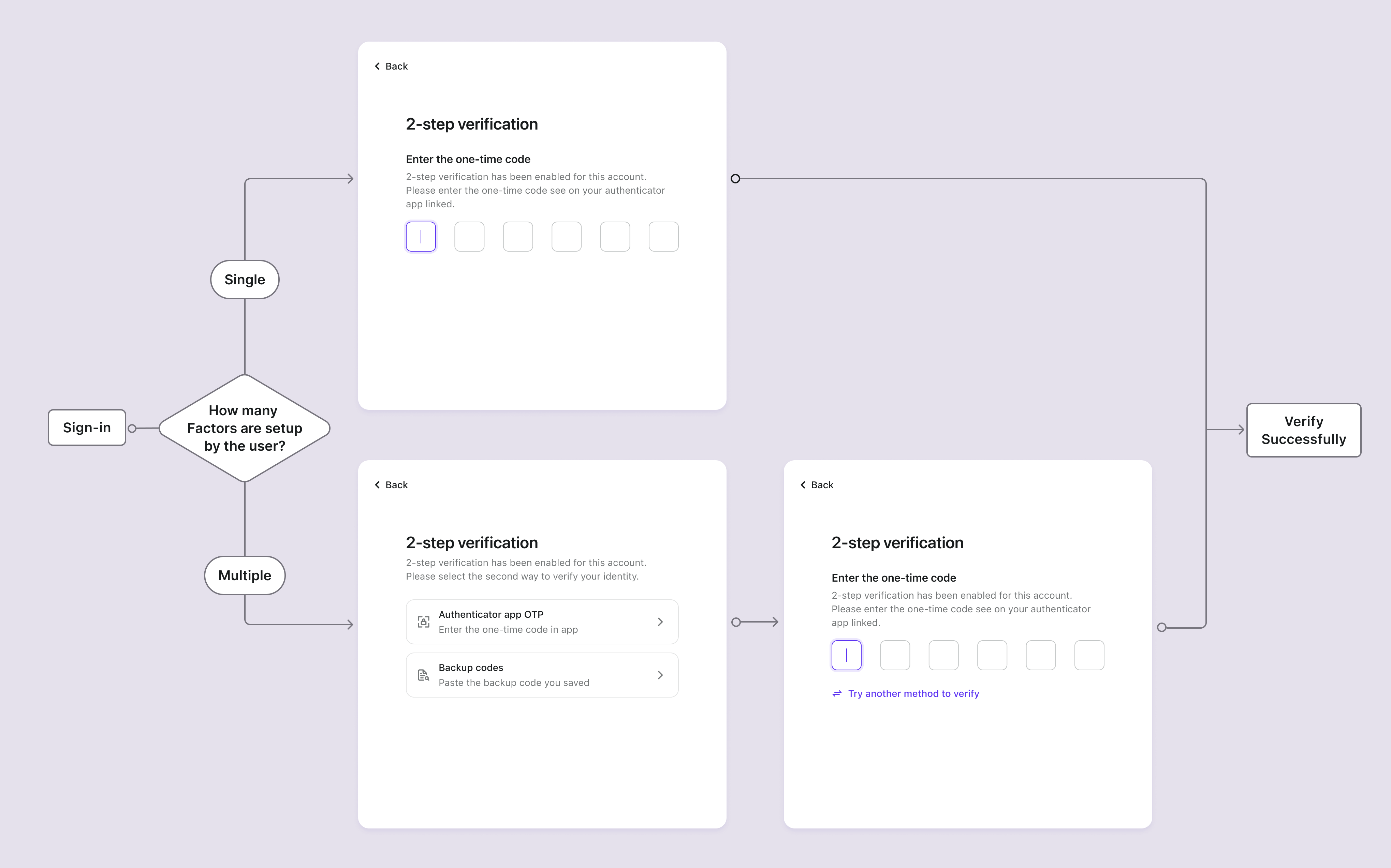 - Se o usuário configurou apenas um fator, ele fará a verificação diretamente.